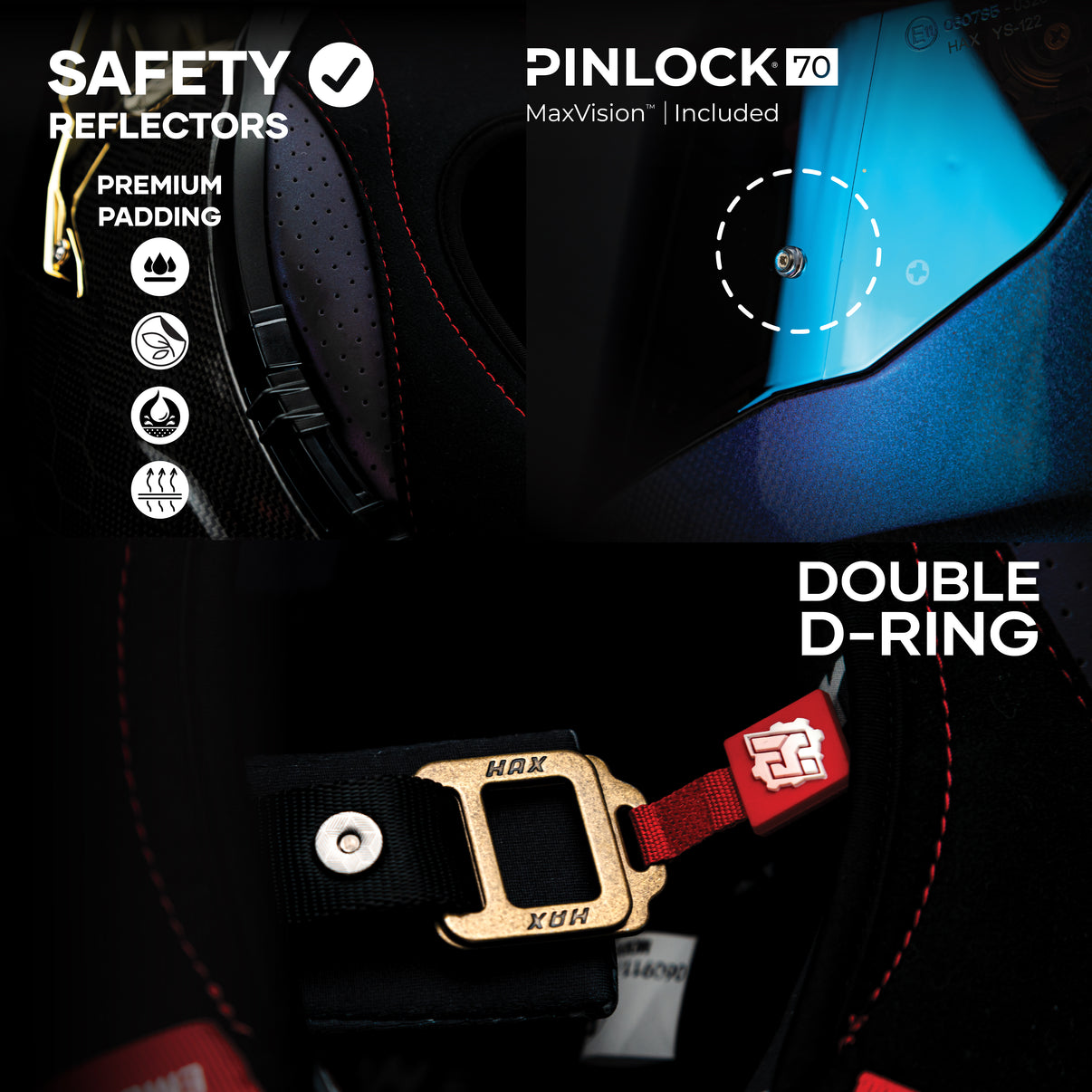• Double D-Ring Fastening: Professional-grade safety strap used in MotoGP and Superbike. Provides maximum security, precise adjustment, and superior durability.
