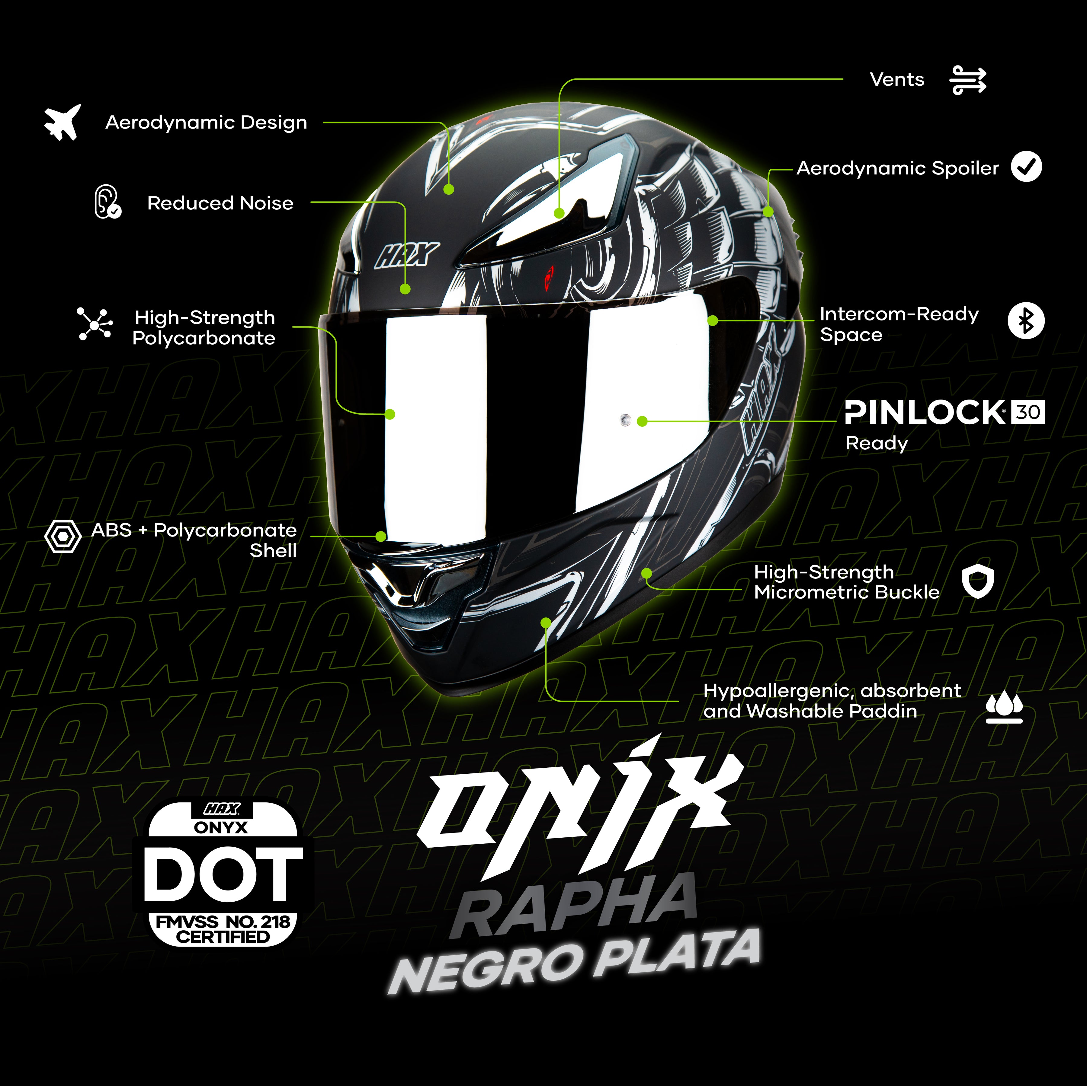 HAX ONIX Motorcycle Helmet Maximum protection, comfort, and style on two wheels. Designed for true road enthusiasts, the HAX ONIX helmet offers the perfect combination of safety, aerodynamics, and a...